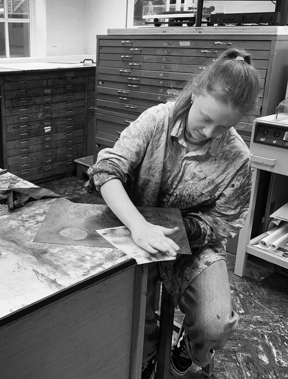 Hello! Beth here. I’m a printmaker specialising in etching, originally from South Wales and now living in Wiltshire. I have a BA in Illustration at Cambridge School of Art, and am currently working as the Artist in Residence at Marlborough College.